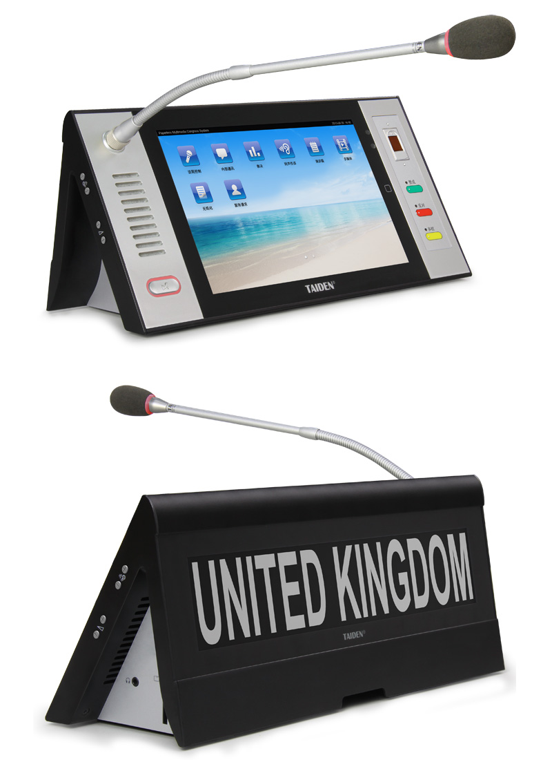 HCS-8338AD…………………无纸化多媒体会议终端(代表单元,带10英寸1280×800高分辨率LCD,电容式触摸屏,内置500万像素摄像头,发言,表决,64通道同传×2,无纸化会议功能,视频对话,视频播放,多通道视频点播与广播,会议服务,内置非接触式IC卡读卡器,指纹识别,网页浏览,可配备纸质名牌,银灰色面壳+黑色底壳,话筒杆另配)