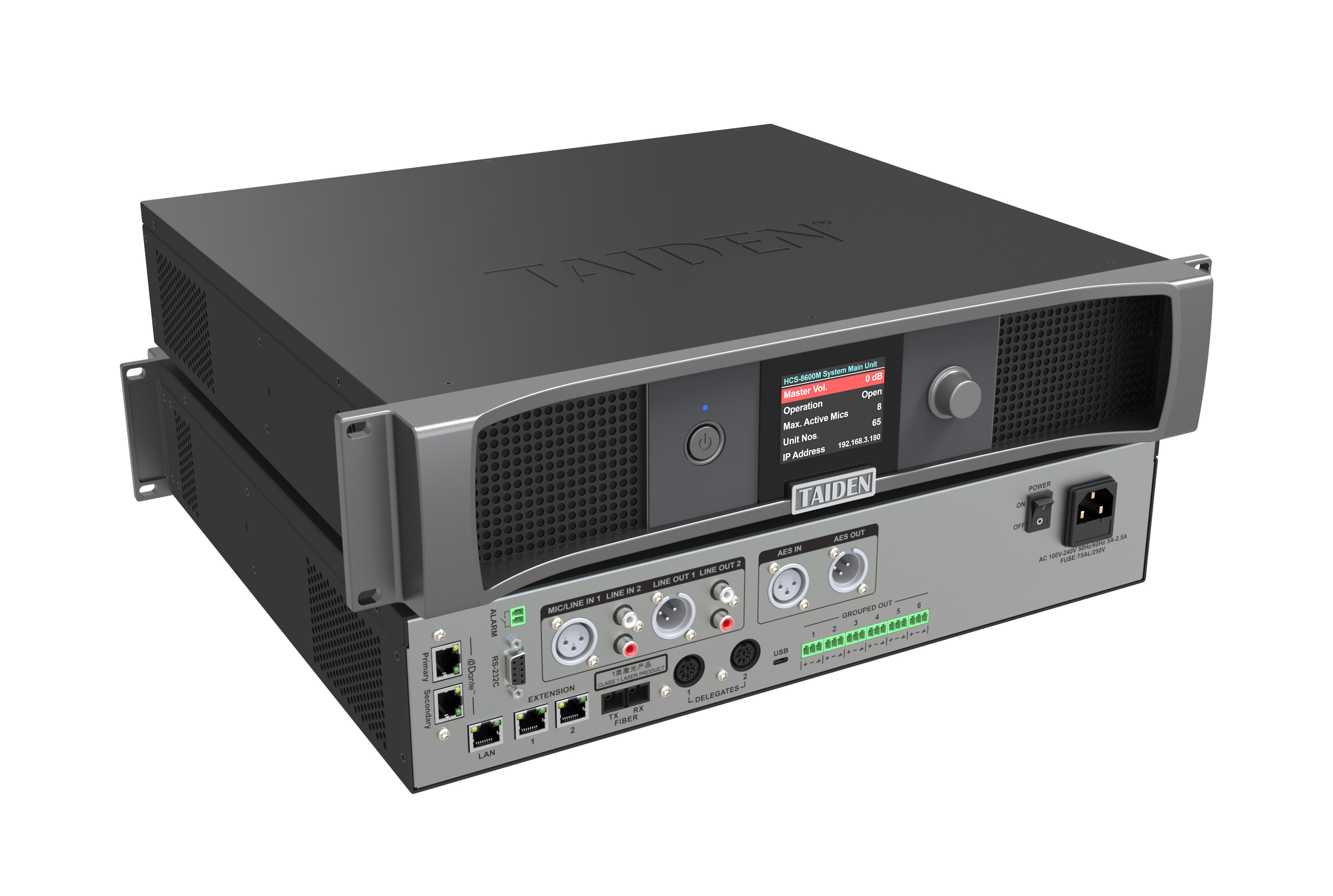 HCS-8600MA/20………………………………全数字化会议系统主机(发言,表决,64通道同传,单模光纤接口,AES/EBU数字输入输出接口,支持Dante协议,麦克风分组输出)