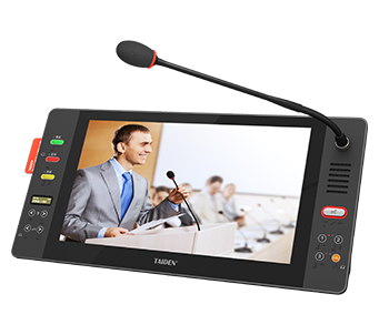 HCS-8665C_B…………………简约型多媒体会议终端(台面式,主席单元,带14英寸1920×1080高分辨率LCD,128x36 OLED,发言,表决,64 通道同传,高清视频播放,HDMI 视频输入接口,内置非接触式 IC 卡读卡器,视频源选择,可接 HCS-1082 系列 E-ink 电子名牌,PoE 供电,黑色)