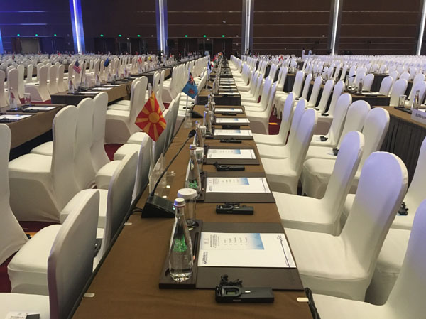 国际刑警组织(INTERPOL)第86届全体大会于9月26日至29日在北京举行,来自158个国家和地区的1500名执法人士、国际刑警组织负责人、相关国际机构代表齐聚国家会议中心,共商国际执法安全合作大计,中国国家主席出席了大会开幕式,并发表了主旨演讲。金年会电子游戏app会议系统凭借一贯的稳定性、安全性、和高度的保密性,成功获得此次大会的会议系统订单,供应了1600席HCS-5100R系列数字红外同声传译接收机,230席HCS-4338NDS全数字化会议系统代表单元,以及8台HCS-8385/60全数字化翻译单元,为此次高级别的安全会议保驾护航。