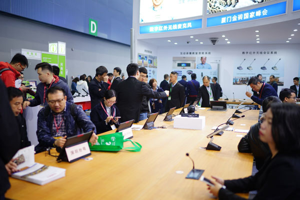 金年会电子游戏app借此次展会展出了多款国内首发的新品,如第四代无纸化多媒体会议系统HCS-8668系列及全新数字红外无线会议系统HCS-5335P系列等等。