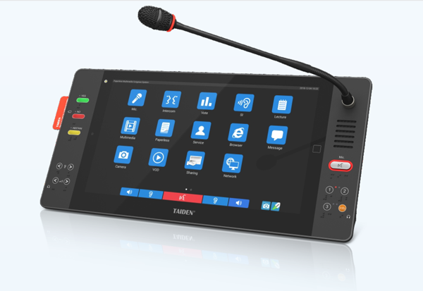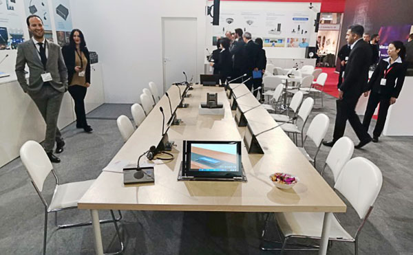在展会上亮相的全新HCS-8668系列无纸化多媒体会议单元绝对是最大的亮点,集合了14寸高清触摸屏以及表决,通道选择,视频源选择等物理按键,读卡器等人性化设计的新单元,充分满足了议会、国际机构、企业董事会等高端客户的各类需求,时尚大气的设计风格也能够与现代化会议室相得益彰。