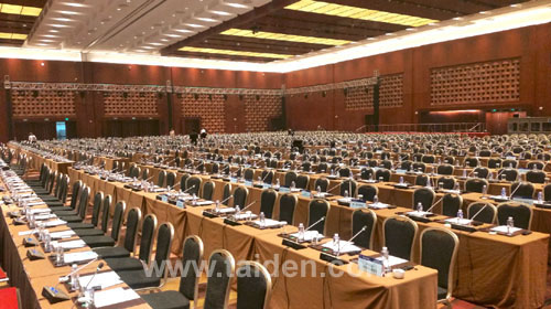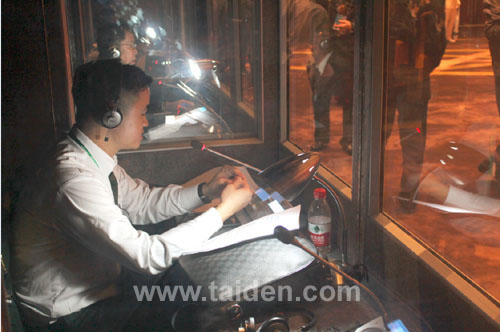 金年会电子游戏app为此次论坛宴会厅及主会场提供了550席金年会电子游戏app HCS-4886DW_B/50全数字会议单元(具有发言、同传及签到功能)、1200席HCS-5100R/32 32通道数字红外同传接收机、40个广播级音频分配器及会议专用数字录像机等设备,同时还应客户要求为此次论坛量身定制了晚宴签到查询软件及会议管理软件。