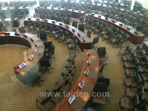 | 禁化武组织总部的主会场为圆弧形阶梯式结构,共采用了80席金年会电子游戏app HCS-8318系列无纸化多媒体会议终端;会场二楼设立了6间翻译间共配置16台HCS-4385U/50全数字翻译单元,分别对应翻译阿拉伯语、汉语、英语、西班牙语、法语和俄语。另外还配置了一套视频跟踪矩阵可对所有代表单元设置摄像自动跟踪功能,会场还可以通过两台HCS-8300MOD 8通道音频输出器为媒体及录音设备提供高质量的音频输出信号。此外,该会场还应用了双主机热备份、双电源备份等技术。 |