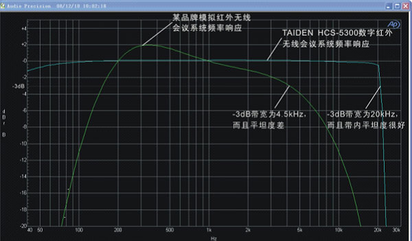 数字红外/模拟红外无线会议系统频响对比