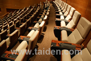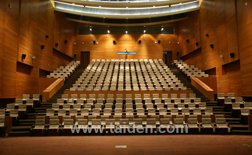 大宴会厅是一个可灵活布置的一个超大多功能厅,并可一分为三。此类厅堂的会议系统应该考虑发言、同传即可。与上述中华厅相似,区别在于一个基本固定式席位,一个是完全灵活布置席位。 设计要点也与中华厅类似。在设备配置上,遵循资源共享原则,占设备成本较大的红外接收机则不再单独配置,只需要将系统发射主机、翻译员单元及红外辐射单元配备完整,并通过布线实现可分区控制即可。红外接收机则中华厅共同调配使用。 灵活布置且用量不大的带同传功能的发言话筒也可与其他系统共享使用。 特点:充分体现资源共享,降低建设成本,提高设备利用率,节能环保。 3.3 400人报告厅 报告厅位于国家会议中心3~5层,呈阶梯式,面积近1000平米(45米×22米),高24米,是召开各种论坛、学术报告及新闻发布的重要国际会议场所。 |