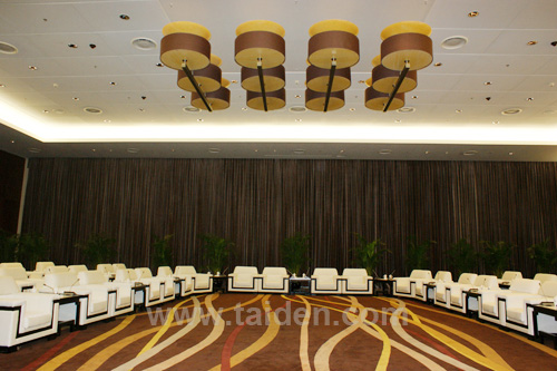 (1)设计紧贴会议现场及使用情况,采用全嵌入式系统,与席位座椅紧密配合,建成后系统稳定可靠; (2)系统先进性强,通过系统设备,改善了会议进程。以往的发布会、论坛、学术报告研讨会的台下发言提问一般采用无线手持话筒,由发问者举手,主持人点名,工作人员传递话筒。随着会议需求的发展,这个过程略显复杂麻烦了,也不利于会议现场的气氛。这套新的系统应可以满足让每个席位都有发言、同传、表决的单元,需要发问者,按下按键即可申请发言,主持人通过软件可以清楚的看到哪个席位什么人在申请发问,主持人可根据现场情况,激活任一申请者的话筒,轻松驾驭会议进程。 (3)由于采用的是全数字会议系统,所有的这些功能都在一根6芯线缆上传输完成,完全不必要担心由于功能的复杂而带来布线的复杂。 3.4 贵宾接待厅及高级会议室同传系统 贵宾接待厅位于国家会议中心1层,共3间,每间会议室的面积约600平方米,高6.5米。贵宾接待厅作为接见重要客户及召开高质量会议的场所。另,高级会议室10间。 |