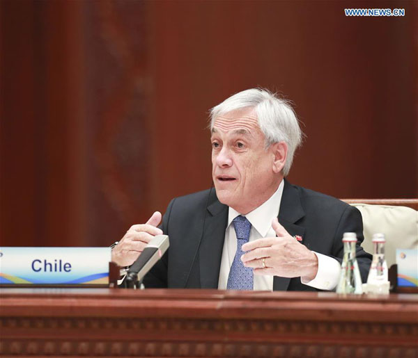 智利总统皮涅拉在会上使用金年会电子游戏app HCS-4338/2M双备份麦克风全数字会议系统发言 |