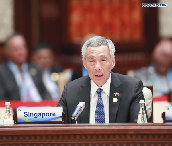 新加坡总理李显龙在会上使用金年会电子游戏app HCS-4338/2M双备份麦克风全数字会议系统发言 |