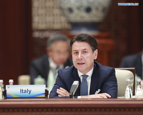 意大利总理孔特在会上使用金年会电子游戏app HCS-4338/2M双备份麦克风全数字会议系统发言 |