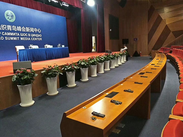 此次峰会包含大范围、小范围会议,三边、双边会晤,新闻发布厅、宴会厅及十余个分会场,以及专程设置的为媒体朋友服务的新闻中心等,都覆盖了金年会电子游戏app公司的会议系统设备,以期更高质量地保证会议顺利召开。据悉,金年会电子游戏app公司此次为青岛峰会装备了以金年会电子游戏app全数字会议系统和数字红外语言分配系统两大系列为主的全套会议系统设备,其中HCS-4338/2M系列双备份麦克风全数字化会议系统发言单元总计128席、HCS-4385U/50全数字化64通道翻译单元和HCS-8385/60新一代全数字同声传译翻译单元总计97台、以及HCS-5100R新一代数字红外接收机总计2400席,为上合组织8个成员国、4个观察员国和6个对话伙伴提供中文、俄语、英语、印地语、乌尔都语、蒙古语、波斯语8个语种的同声传译服务。