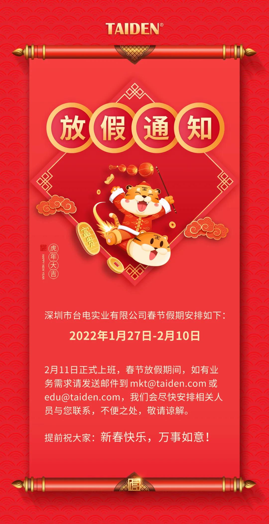 2022年1月27日至2月10日为公司春节假期,2月11日(正月十一)正式上班。